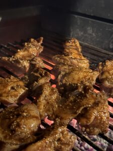 1. 1. maak als eerste de marinade, dit doe je door alles te mengen. 2. bestrooi de kapdijen licht met 5 Spice. 3. stop de marinade in de vacuumzak met de kip en trek vacuum. marineer dit voor ten minste 4 uur. 3. doe de kip op een vergiet en van de marinade op, haal de gember en knoflook uit de marinade en kip doe dit bij de opgevangen marinade. 4. doe bij de opgevangen marinade de honing, sojasaus en hoisin saus, zet de staafmixer erin en maal de knoflook en gember fijn. dit is nu de laksaus grill de kip op een directe zone gaar(200º) en tijdens het grillen een paar keer lakken met de laksaus.